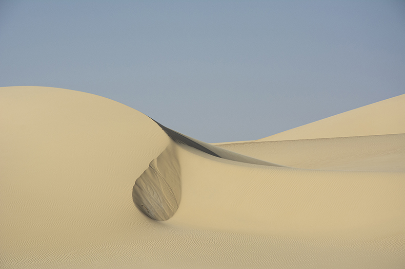 Lo scatto della duna proposta da Giancarlo Cistriani, medico in pensione del cremonese, ci permette di rilevare alcuni spunti per indicare una corretta inquadratura: il corretto utilizzo delle linee delle creste, il contrasto dei colori, le piccole increspature create dal vento sulla sabbia che guidano l’occhio al punto più alto della duna principale.