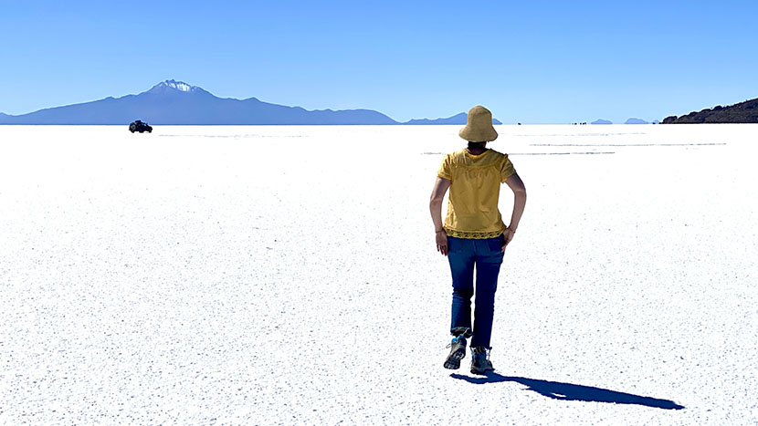 Dopo due anni d’intenso lavoro – racconta Francesco Milone, cardiologo di Torino – con la moglie (anche lei medico) ha deciso di visitare la Bolivia durante la pausa delle vacanze invernali. Il contrasto del sale (del lago salato Salar di Uyuni), con l’azzurro intenso del cielo e delle montagne all’orizzonte, rendono lo scatto decisamente particolare così come la scelta di mettere al centro la moglie, che grazie ai colori dell’abbigliamento crea un’interessante variante cromatica.