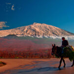 Vincenzo Grasso, ginecologo, iscritto dell’Ordine di Catania, ci riporta indietro nel tempo, nella sua Sicilia degli anni ’80 quando le strade non erano invase dalle auto e dopo aver lavorato la campagna il contadino tornava a casa ancora in sella all’asino. Il rosso della vegetazione al tramonto e sullo sfondo l’Etna imbiancato, completano il panorama da cartolina. La digitalizzazione della pellicola rende lo scatto ancora più suggestivo.