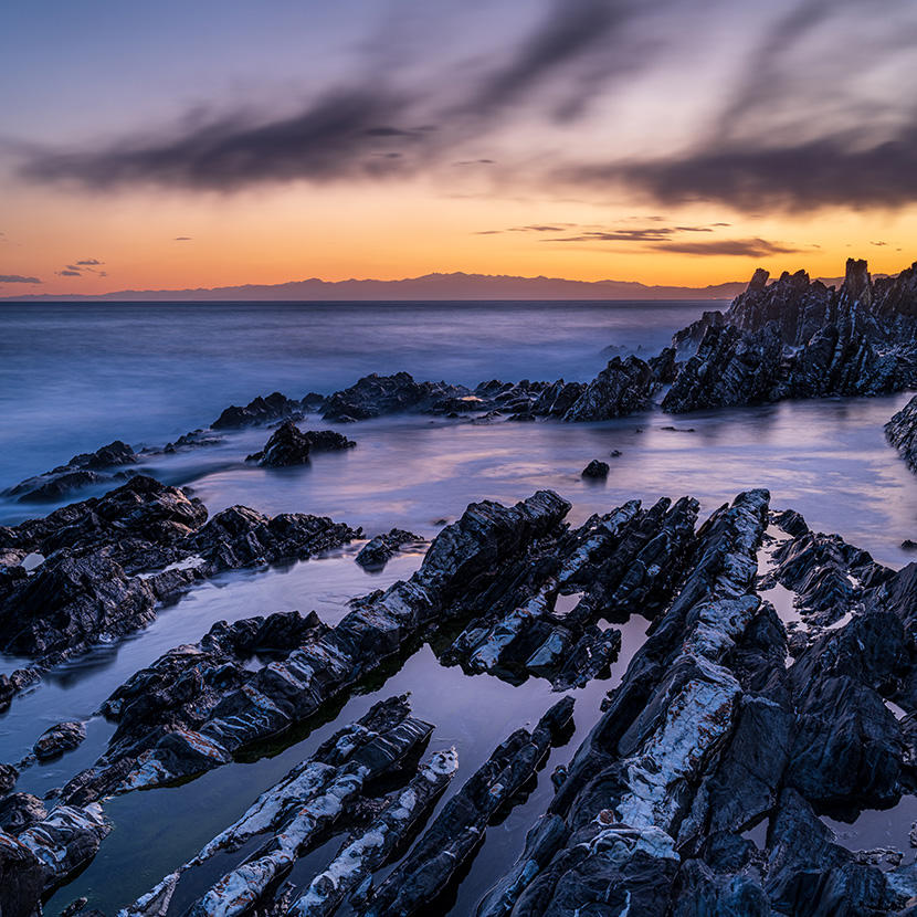 Nello scatto di Franco Ameli, specialista in Otorinolaringoiatria e patologia cervico-facciale a Genova, gli scogli del mare sembrano immobilizzati da un magma più che dalle acque del Golfo Ligure. La prima penombra che si colora tutta di blu contrastando con il rosso del tramonto e le nuvole nere striate dal vento, rendono questo panorama decisamente insolito, in particolare se si pensa che è stata scattata a Nervi.
