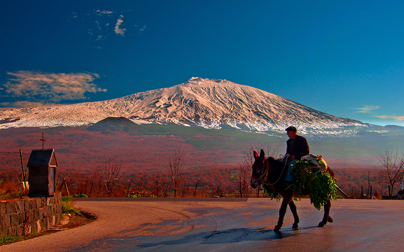 Vincenzo Grasso, ginecologo, iscritto dell’Ordine di Catania, ci riporta indietro nel tempo, nella sua Sicilia degli anni ’80 quando le strade non erano invase dalle auto e dopo aver lavorato la campagna il contadino tornava a casa ancora in sella all’asino. Il rosso della vegetazione al tramonto e sullo sfondo l’Etna imbiancato, completano il panorama da cartolina. La digitalizzazione della pellicola rende lo scatto ancora più suggestivo.