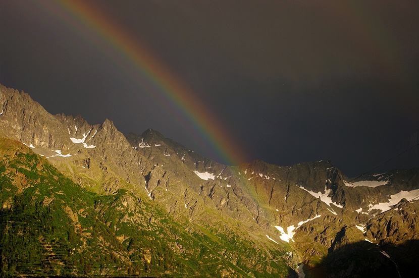 Non sappiamo se al fondo della vallata, dove nasce l’arcobaleno, Giancarlo Cistriani – specialista in chirurgia generale, iscritto dell’Ordine di Cremona – ha trovato la pentola con le monete d’oro. Di certo è riuscito a cogliere il contrasto tra le vette illuminate dal sole e il cielo ancora nero dopo il temporale, ponendo al centro il protagonista: l’arcobaleno.