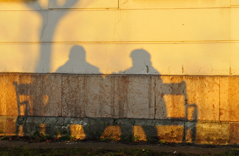 Due persone, immagino un uomo ed una donna, sono seduti su di una panchina sotto ad un albero spoglio a godere del tepore invernale grazie ad un sole raggiante che li illumina. Cogliere le ombre riflesse è sempre una ottima sfida per il fotografo che può dare sfogo alla sua capacità di composizione dando un’altra visione della realtà, ad esempio trasformando una foto di strada in un quadro, come è capitato in questo scatto. Vedere non vuol dire comprendere, invece osservare con attenzione talvolta ci aiuta a valutare la possibilità d’interpretare meglio un soggetto.