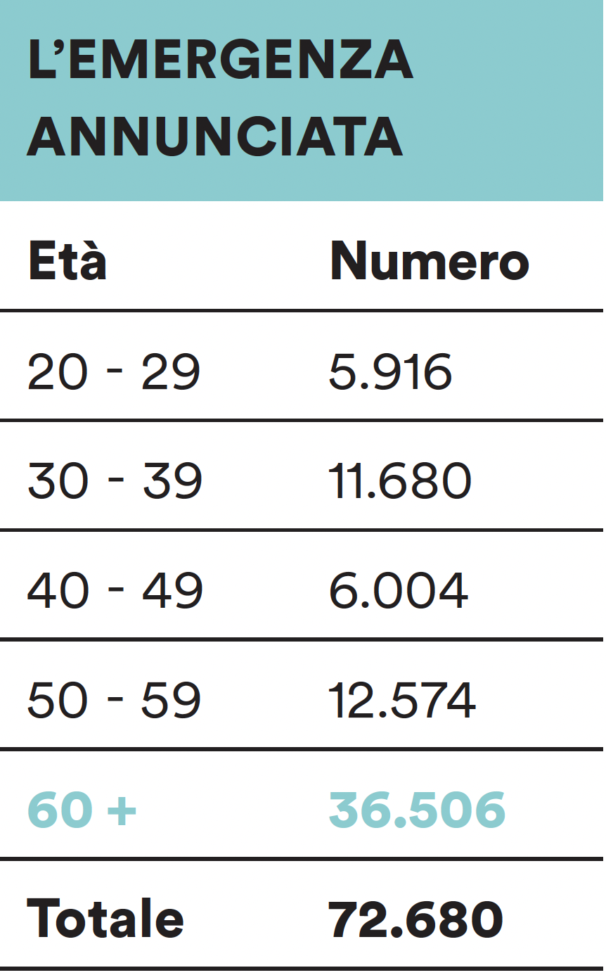 Più della metà dei medici di famiglia, di continuità assistenziale e dei pediatri di libera scelta ha oltre 60 anni di età (dati al 31 dicembre 2021) e ha quindi i requisiti per andare prestissimo in pensione. Si stima che il numero dei giovani formati o avviati finora alla formazione sarebbe sufficiente per coprire solo il 50 per cento dei posti